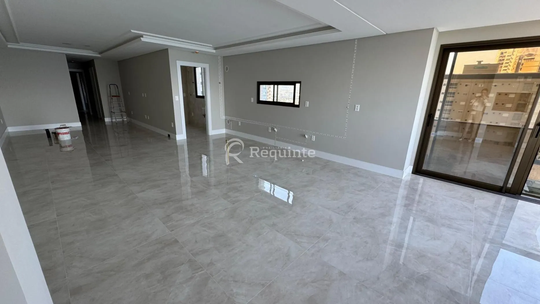 Piso porcelanato de grande formato nas áreas sociais;