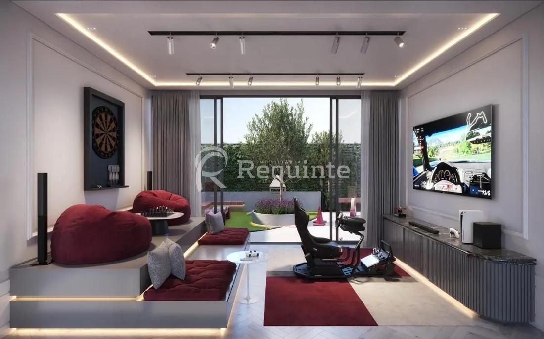 Área de lazer decorada, mobiliada, equipada, climatizada e sonorizada;