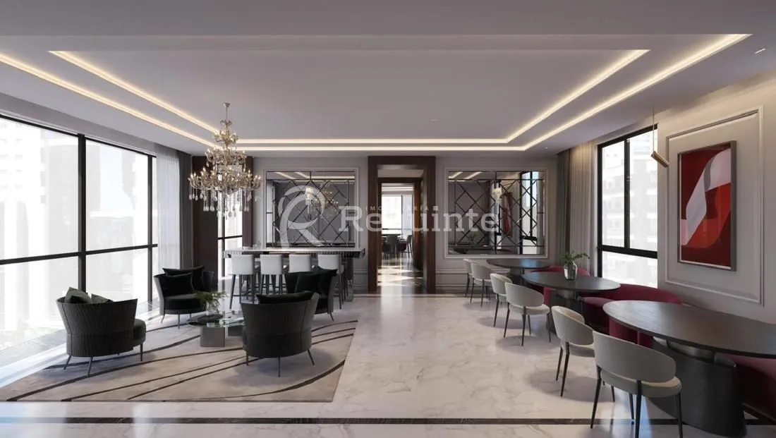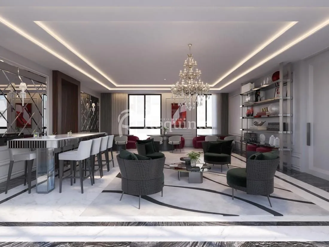 Mobiliário do hall de entrada e da área de lazer com a qualidade e a sofisticação de marcas renomadas.