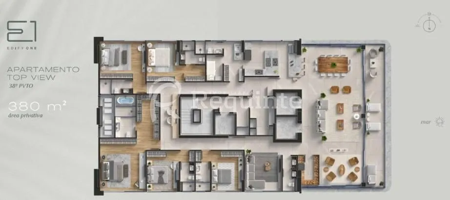 Piso porcelanato em grandes formatos nas áreas sociais;